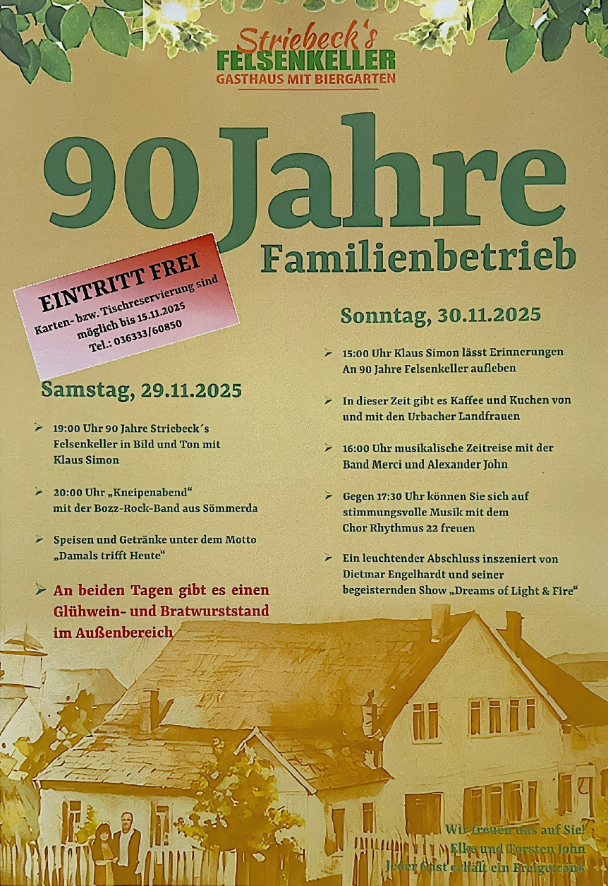 Leider haben wir für die 90 Jahresfeier keine freien Plätze mehr. Das gilt für beide Tage.